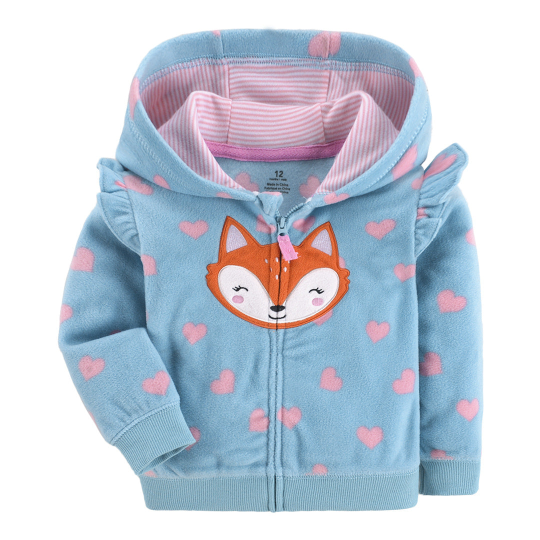 Cute Fox fleece Zip-Up Hoodie | Pink and blue